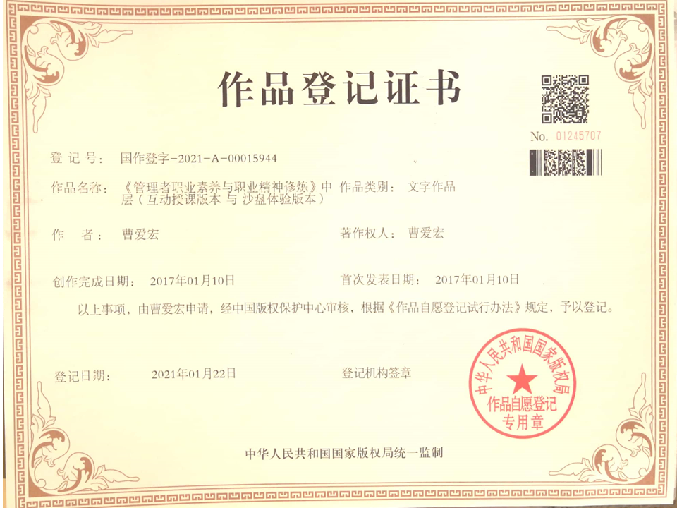 曹愛宏老師版權(quán)課程證書: