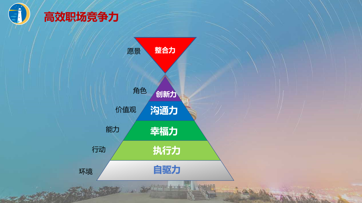 為了更有效地宣傳推廣高效職場人士在日常管理中的核心競爭力, 能夠掌握職場的勝任素養, 養成良好的職場工作習慣,本課程用于提升現代企業職場人士的職場素養, 幫助企業職場人士能夠掌握系列的職場素養競爭力的相關理念與工具, 更好地擁有主動積極的陽光心態、提升職場競爭力及工作效率, 能夠在個人績效改善的同時, 也養成利他、共贏的良好素養, 發場團隊有效溝通, 促進團隊成長,在VUCA變化的時代用創新思維及整合優勢互補, 幫助推動組織的發展, 實現個人成功、團隊成功以及組織成功的三贏局面!