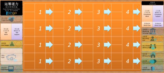 該模擬課程的基礎背景設定為一個項目團隊。每個小組(分別扮演一個項目經理的角色)由若干個學員組成。他們在面對來自其他項目團隊(其他學員小組)的激烈競爭中,推動自己的項目團隊向前推進、發展。在這個課程中,學員們必須出眾多的決策,例如項目團隊籌建、新項目導入、項目風險管控等。每個獨立的決策似乎容易做出,然而當它們綜合在一起時,許多不同的選擇方案自然產生。另外,一個非常關鍵的問題是面對項目的獨特性和不可預測應該如何進行有效的成本控制和風險管理,盡量提升項目的品質,得到客戶青睞。而項目管理的各個模塊也會被巧妙地分布在每一個操作階段,潛移默化地展現出來。
