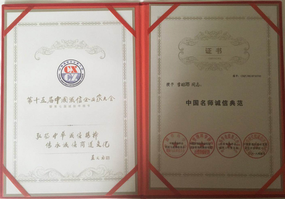 第十五屆中國(guó)誠(chéng)信企業(yè)家大會(huì)-中國(guó)名師誠(chéng)信典范