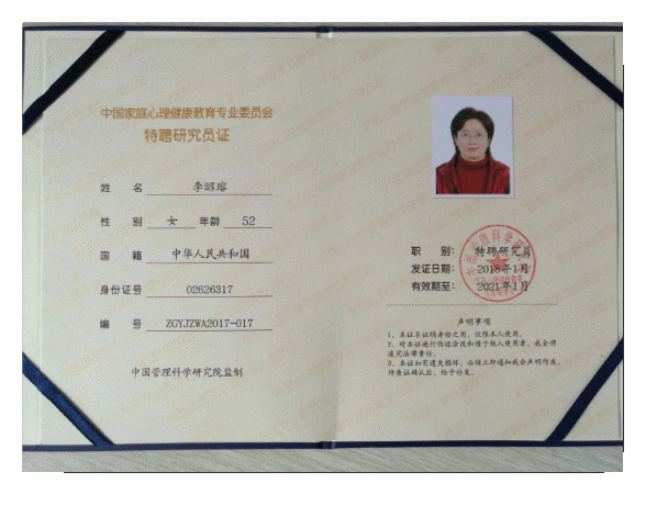 中國(guó)家庭心理健康教育專業(yè)委員會(huì) 特聘研究員