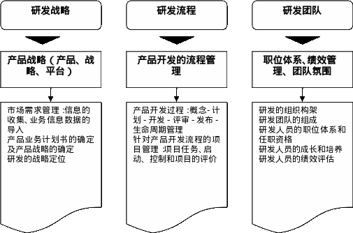 從研發戰略——研發流程——研發團隊三大方面作為著手點。