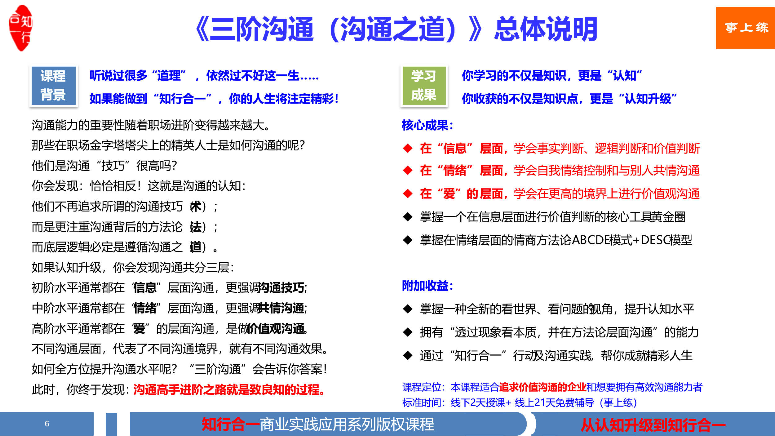 知行合一版權課--《三階溝通(溝通之道)》課程大綱(2024版)