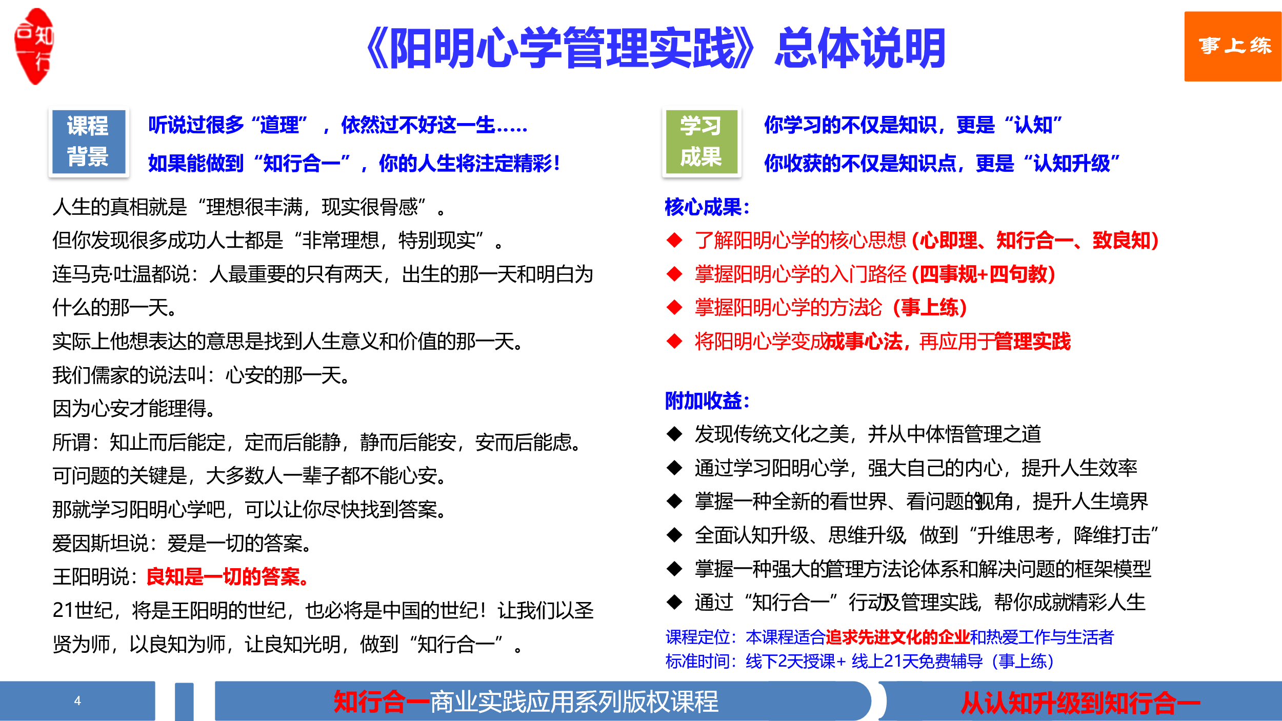 知行合一版權課--《陽明心學管理實踐》課程大綱(2024版)