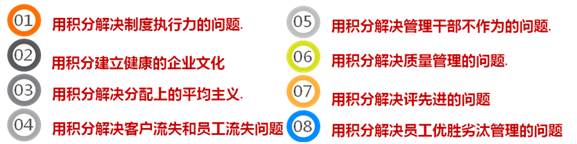 12. 將公司管理問題與積分掛鉤,通過積分傳遞管理要求,通過員工掙分解決管理問題;