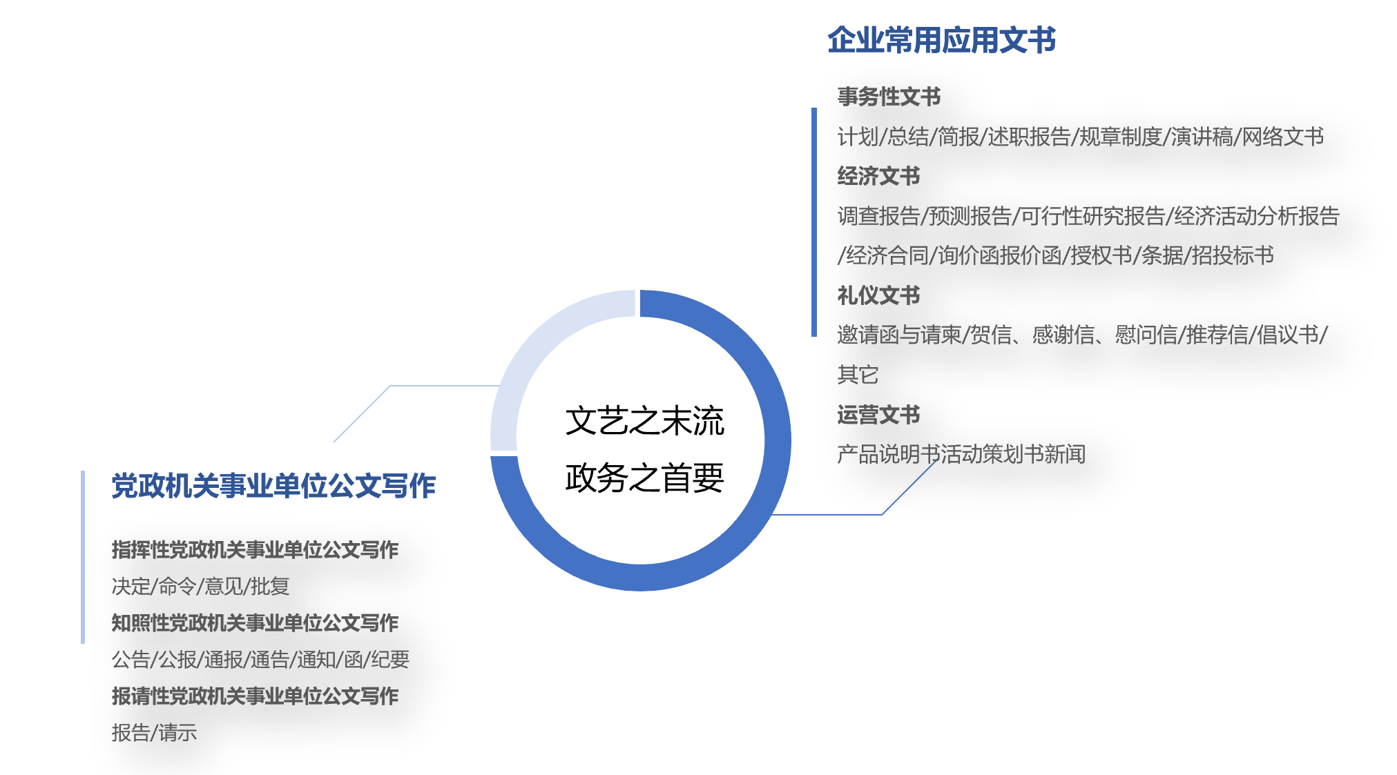 公文寫作與每個人的日常生活和工作有著密切關系,同時也是政府機關、企事業單位工作人員的必備能力。幫助學員架起內接自我、外通世界的溝通橋梁,形成系統的思辨性思維,提升公文寫作水平,增強職業能力與職場競爭力,而且為職業生涯的可持續發展奠定了基礎,在如今的市場環境下,酒香也怕巷子深,好的產品也要做好宣傳推銷工作,職場中也是一樣,工作做的再好,也需要恰到好處的展示推廣自己的工作成果。