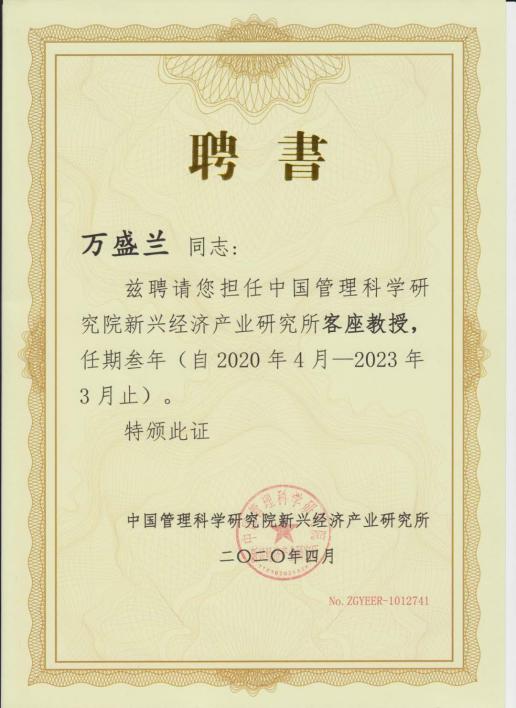 中國管理科學研究院新興經(jīng)濟產(chǎn)業(yè)研究所客座教授