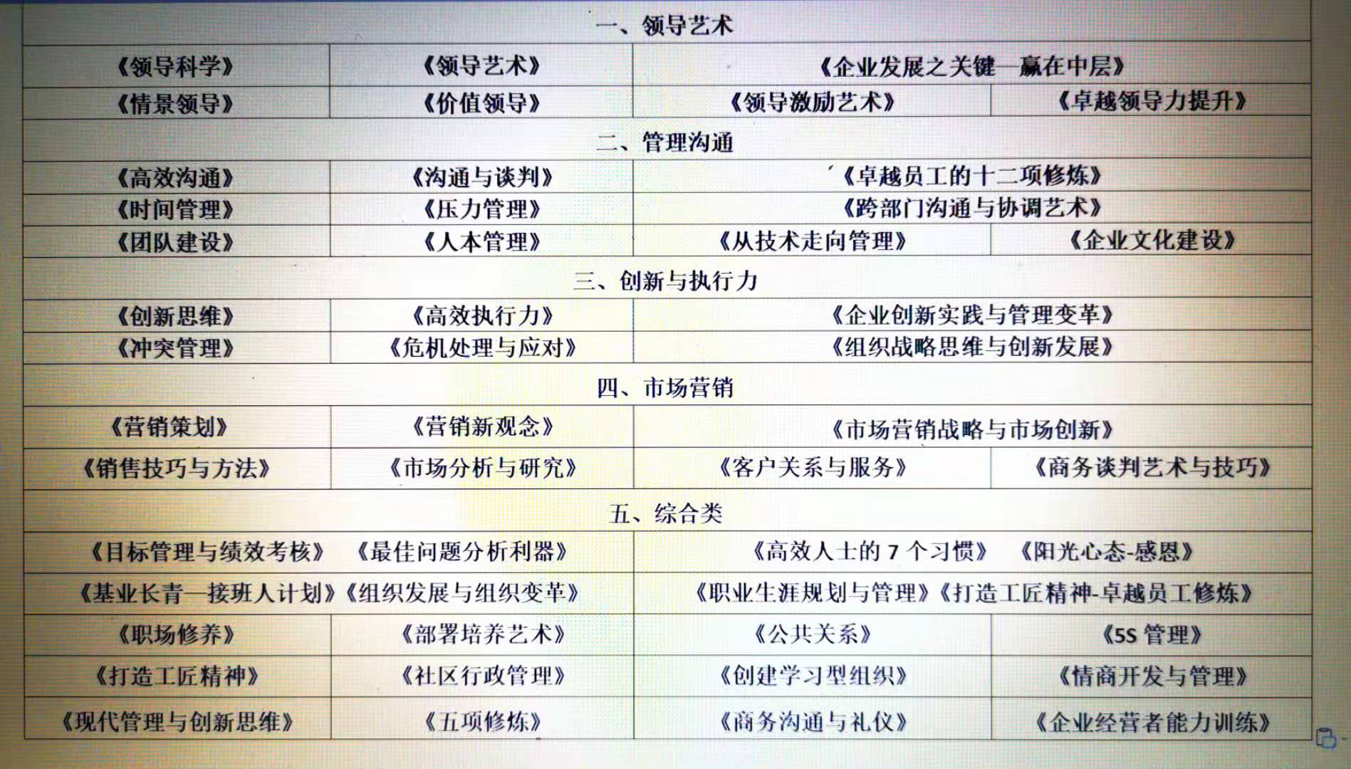 培訓經歷:1、85年開始在(為)同濟大學、北京大學、清華大學、復旦大學、交通大學、上海財大、鐵道大學、浙江大學、重慶大學、重慶理工、重慶工商大學、蘇州大學、貴州大學、吉林大學、浙江工大等高校為校本科生、研究生及MBA、MPA、GCT、EMBA、DBA及總裁班等學生開設《市場營銷及策劃》《領導科學》《企業管理》《戰略管理》《高級管理學》《管理心理學》《企業文化》及《領導修煉與管理溝通技巧》等課程。 北大和清華總裁班講師,上海東方講壇特聘講師。 2、2000年開始為同濟在全國各地的學生做MBA 、MPA、 GCT等〈管理學〉考研和考博輔導。2002年開始為太奇、泰琪、新起點、華章、華宏、海文等全國著名的考研學校做〈管理學〉考前輔導,取得了優異的成績。被譽為上海MBA、MPA、GCT考研〈管理學〉輔導專家。為全國職業經理人、營銷總監、期貨師、高爾夫高管、體育舞蹈產業高管等資質課程授課。為華圖教育集團的公務員考前面試輔導等等。 3、曾為數百家企業和管理培訓公司做內訓:(上海地區) 外資企業: 外資及民營企業如:NU SKIN、(法)ATOFINA、川崎汽船(日)、法國達飛輪船(中國)有限公司、圣戈班中國公司(法)、完美(馬)、日楊電子科技(臺)派斯德生化有限公司(臺)、美國阿迪達斯國際集團(美) 麥克維爾空調制冷集團(美)美商如新、臺灣建國亞洲公司、一號店、生特瑞(亞太)有限公司、德國勞氏船級社(GL)MBA項目、愛茉莉太平洋貿易有限公司 (韓)、普發真空技術(上海)有限公司(德)、愛思開綜合化學投資(韓)有限公司 內資企業: 交通物流:東方航空、東航工程技術公司、上海航空、上海申通地鐵集團處級干部、上海磁浮交通發展有限公司、安吉天地汽車物流有限公司、上海外輪理貨有限公司、中國船級社上海分社、上海外高橋造船有限責任公司、江南長興船有限責任公司、上海江南長興重工有限責任公司、滬東中華造船(集團)有限公司、中國船舶工業集團公司第708研究所、中海集運上海總公司、上海港教育培訓中心、上海港集團龍吳公司中層干部、上汽集團總公司培訓中心、吉利汽車、上海延峰偉世通汽車飾件系統公司、上海海博股份有限公司、上海浦東新區公共交通有限公司、布林克國際貨運(上海)有限公司、中海集裝箱運輸股份有限公司、上海海運(集團)公司(原上海海運局)人力資源部、上海虹橋國際機場公司員工培訓 銀行金融:中國建行(上海(浦東、奉賢)云南(玉溪)、貴州、新疆、寧夏、甘肅、山東、珠海)分行、工商銀行(上海數據中心、山西分行、湖北分行、諸暨分行、上虞分行)、浦發銀行(上海、寧波、溫州)、上海銀行(上海銀行總行、普陀支行)、中國銀行(上海、湖北、安徽、云南)、農行(江西)上海期貨交易所、上海申銀萬國期貨公司、上海國家會計學院、上海印鈔廠、海通證劵、中國銀行上海國際金融研究院骨干培訓、茅臺(上海)融資租賃有限公司中層干部培訓、 生產企業:上海電氣集團(汽輪機公司、上海電機公司)、光明乳業集團、福大(集團)股份公司、上海諾一集團、上海南空軍械廠、上海電氣汽輪機廠、上海汽車齒輪二廠、上海柴油機股份有限公司、征泰集團(上海征泰飼料公司)、上海華誼藥業(集團)公司、上海鍋爐廠有限公司2、上海閘電燃氣輪機發電有限公司、上海晨光文具股份有限公司、上海英雄(集團)有限公司(英雄金筆廠)、沁園集團股份有限公司上海分公司、上海寶冶集團有限公司教育培訓中心(5)、上海寶鋼化工有限公司、上海鵬正電氣有限公司、上海外高橋發電有限責任公司、上海振華重工機械有限公司、中國電力建設(股份)公司、中國電力建設集團全國工會主席 藥業企業:上海醫藥集團股份有限公司、上海信誼醫藥有限公司、上海信誼萬象藥業股份公司、上海信誼嘉華藥業股份公司、新先鋒制藥廠中層干部、華宇藥業(集團)公司、上海雷允上藥業有限公司(藥業西區有限公司、雷允上藥城、神象參茸分公司)、上海新亞藥業有限公司、上海凱寶藥業股份有限公司(奉賢)、 貿易投資:上海偉卓國際貿易有限公司、上海吉聯投資公司、均瑤集團、復星集團、開開集團、大山合集團有限公司、上海益多電子商務有限公司、上海豫園旅游商城股份有限公司、豫園商城老街 服務企業:中國人壽保險、中國平安人壽保險上海分公司、幸福人壽保險公司、上海太平洋人壽保險集團培訓中心、上海太平洋財產保險總公司、上海市自來水(閔行公司、市北公司)、上海開新汽車服務公司、紅子雞美食總匯、上海錦江旅游有限公司、上海鐵路印刷有限公司、上海金陵電子網絡股份有限公司、上海新南洋股份有限公司、廣生行企業、上海景鴻國際物流股份有限公司、中化集團遠東國際租賃有限公司教育、上海陸家嘴物業管理有限公司、上海利宏勞務服務公司、 通訊網絡:晨訊科技集團、中國電信學院、(上海電信學院)、光大通訊、中國移動通信集團上海有限公司浦東分公司、上海地面通信息網絡公司、上海博游網絡科技有限公司、上海靈禪信息技術有限公司、上海游寶電腦軟件有限公司、上海雙贏思睿通信設備有限公司、上海杉杉科技有限公司、 房產城建:中國建筑股份有限公司、上海禾木城市規劃設計有限公司、上海勘測設計研究院有限公司、上海市建筑科學研究院、