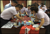 全體合影頒發(fā)《重走長征》黨建沙盤模擬課程學(xué)習(xí)證書,21天課后閱讀書籍、行動方案,工作實踐。